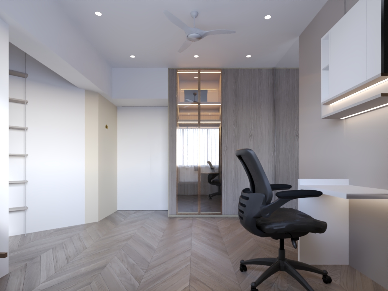 With its soft palette, refined textures, and meticulously planned spaces, the project transforms 890 sq.ft. into a tranquil, elegant retreat that feels expansive and timeless.