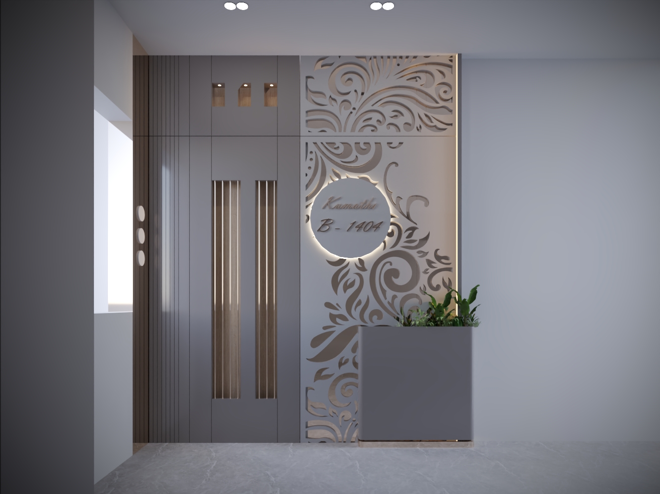 - Vertical fluted details for modern geometry